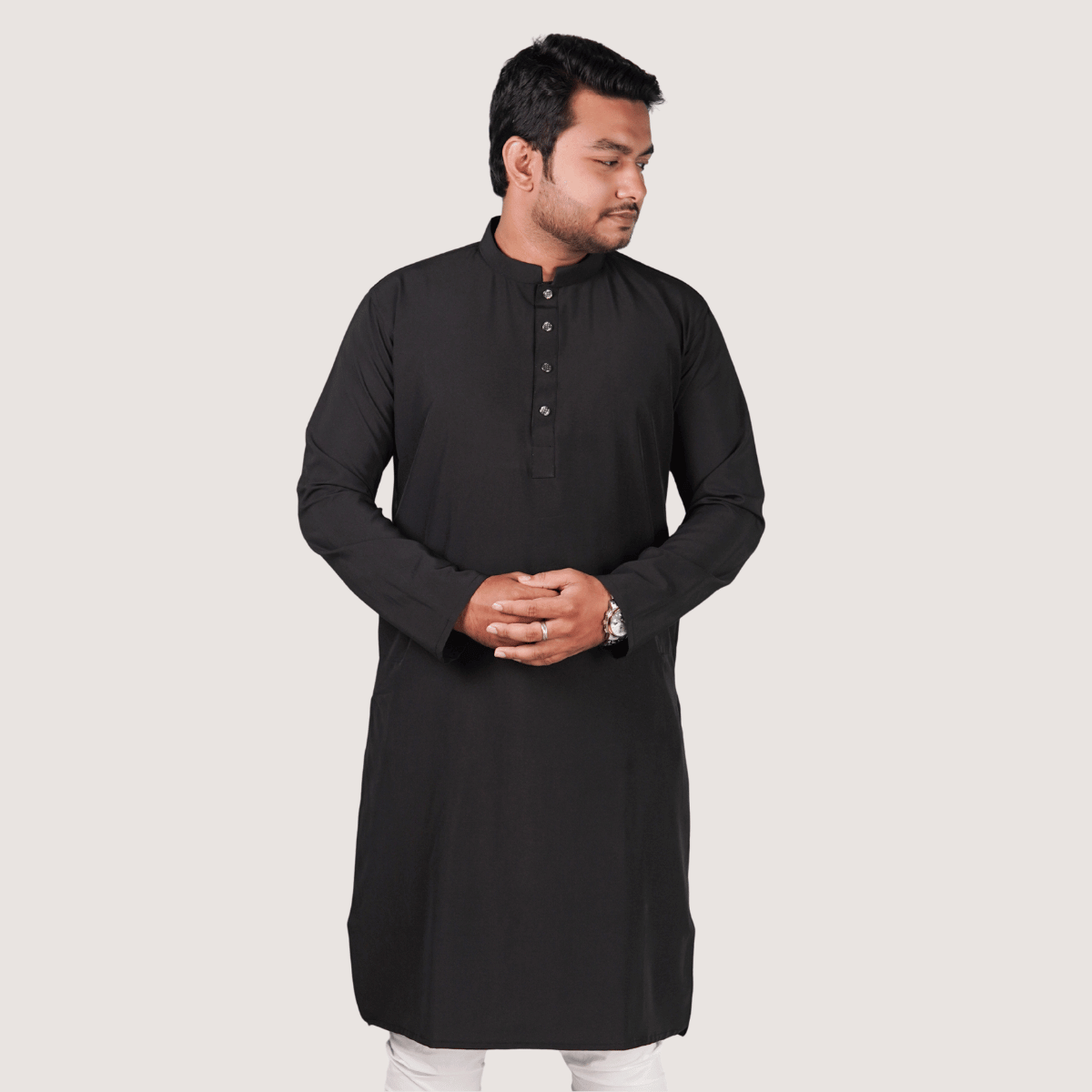 ব্ল্যাক কালার অরিজিনাল প্রিমিয়াম চায়না ফেব্রিকের সলিড পাঞ্জাবি