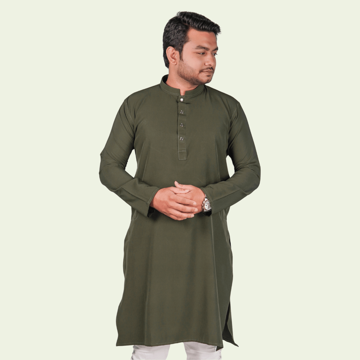 জলপাই কালার অরিজিনাল প্রিমিয়াম চায়না ফেব্রিকের সলিড পাঞ্জাবি